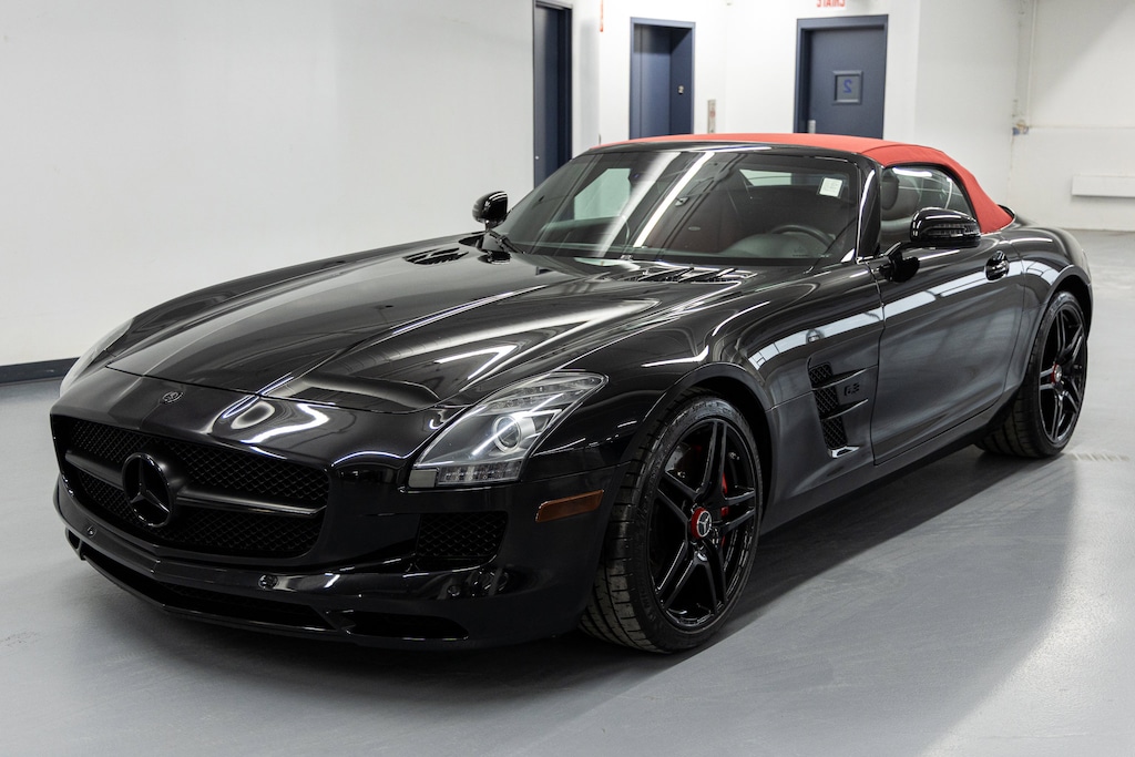 Extremely clean SLS AMG Roadester!!! Fresh service just completed! Desirable color combination, Black with Red full leather interior and Red top! Bang & Olufsen Sound system!